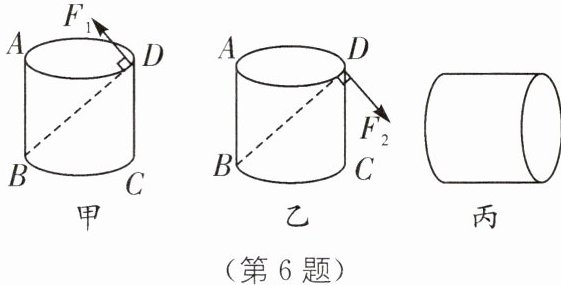 6. 有一圆柱铁块,想用如图甲、乙两种方法使它倒下成图丙状。比较两种方法力和做功大小正确的是(