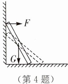 4. 一根粗细均匀的木棒,斜靠在竖直墙壁上。墙壁光滑,地面粗糙,木棒受到的重力为G,墙壁对木棒的弹力为F,如图所示,现让木棒的倾斜度变小一些至虚线所示位置,木棒仍能静止斜靠在墙上,则与原来相比,G和F变化情况为(