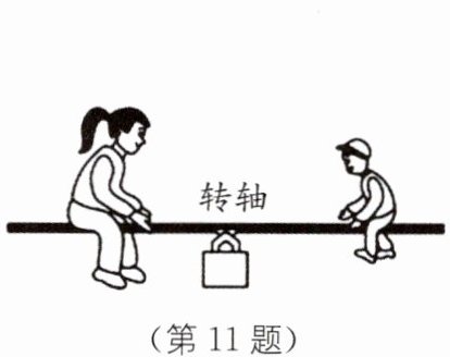 11. 如图所示,妈妈体重比小明大,跷跷板水平平衡时,妈妈比小明离转轴__