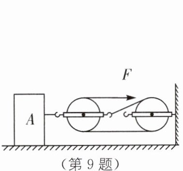 9. 如图所示,在水平拉力F的作用下,使物体A沿水平面以速度v向右匀速运动了距离s,若物重为G,平面对物体的摩擦力为f。下列说法正确的是(