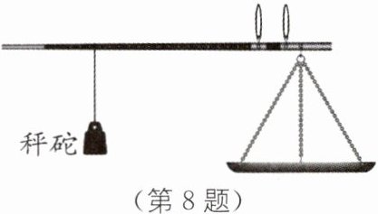 8. 杆秤是我国发明的人类最早的衡器,是我国劳动人民智慧的结晶。小丽在课堂上了解杆秤后,在家里找到一杆除了秤砣生锈变重外,其他均完好的杆秤。用这杆秤测得的物体质量与秤砣生锈变重前测得的物体质量相比(