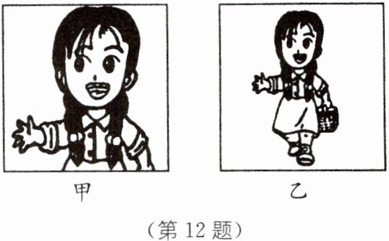12. 如图所示是小红的两张清晰的照片,拍摄这两张照片时照相机镜头的焦距相同,那么拍摄______照片时,相机离小红的距离更大.
