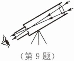 9. 如图所示是简易天文望远镜内部结构.远处的物体经过物镜成一个