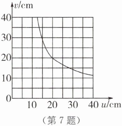 7. 某班同学在“探究凸透镜成像规律”的实验中,记录并绘制了物体到凸透镜的距离u跟像到凸透镜的距离v之间关系的图像,如图所示.下列判断正确的是(