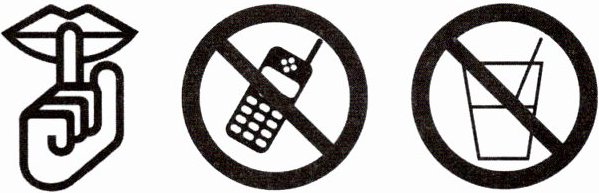 (1)“书吧”入口处有“读者须知”,没有文字,只有标识,按照从左到右的顺序说说这些标识代表的意思。