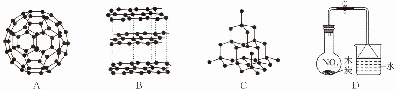 。(5)如图D所示,向盛有红棕色二氧化氮$(NO_2)$气体的烧瓶中投入几小块木炭(或活性炭),最终观察到烧瓶内红棕色
