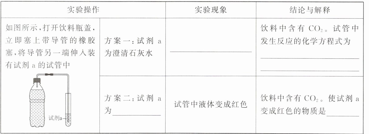 【交流反思】同学们经过讨论,一致认为方案一比较合理,方案二也可能是该饮料中的柠檬酸随气体进入试管从而引起试剂a的变色。