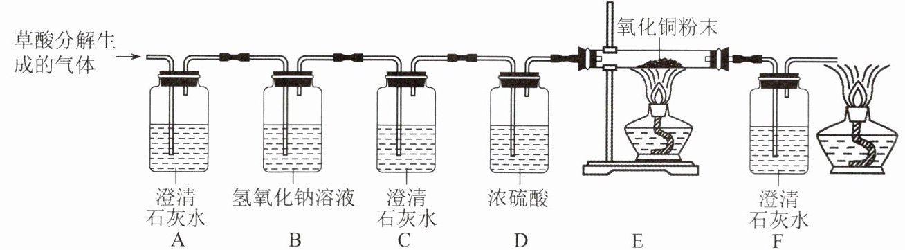 (填序号)中的澄清石灰水变浑浊,证明草酸分解有$CO_2$生成。(2)有两种实验现象分别都能证明草酸分解生成的气体中含有CO。
