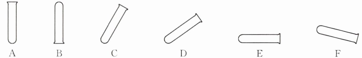 3. 试管是化学实验中最常用的玻璃仪器。在不同的实验中,试管的放置方法是不同的,常见的有以下六种。请选择正确的放置方法,将其序号填写在下列化学实验基本操作中。