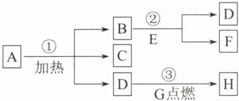 4. A、B、C、D、E、F、G、H八种物质有如图所示关系。其中A是一种暗紫色固体,B、G都是黑色固体,D能使带有火星的木条复燃,E是一种无色液体,H是一种能使澄清石灰水变浑浊的气体,在反应②的前后B的质量和化学性质都不改变。下列说法不正确的是(