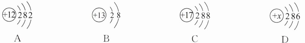 (填序号)。(2)图D所示为某原子的结构示意图,则$x= $