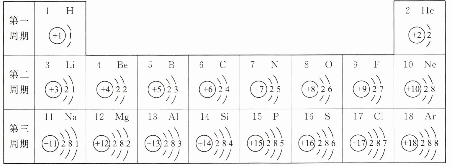 从左到右,各元素原子的最外层电子数从1到8依次递增