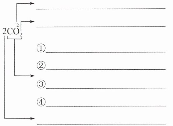 氧元素显-2价 1个二氧化碳分子中有2个氧原子 ①二氧化碳这种物质 ②二氧化碳由碳元素和氧元素组成 ③1个二氧化碳分子 ④1个二氧化碳分子由1个碳原子和2个氧原子构成 2个二氧化碳分子