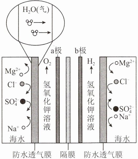 2.(2024·海南)我国科学家发明的无淡化海水直接电解制氢技术,利用防水透气膜将海水和电解槽隔离开,从根本上解决了海水杂质离子对设备的腐蚀问题,其工作原理如图所示。下列有关说法不正确的是(