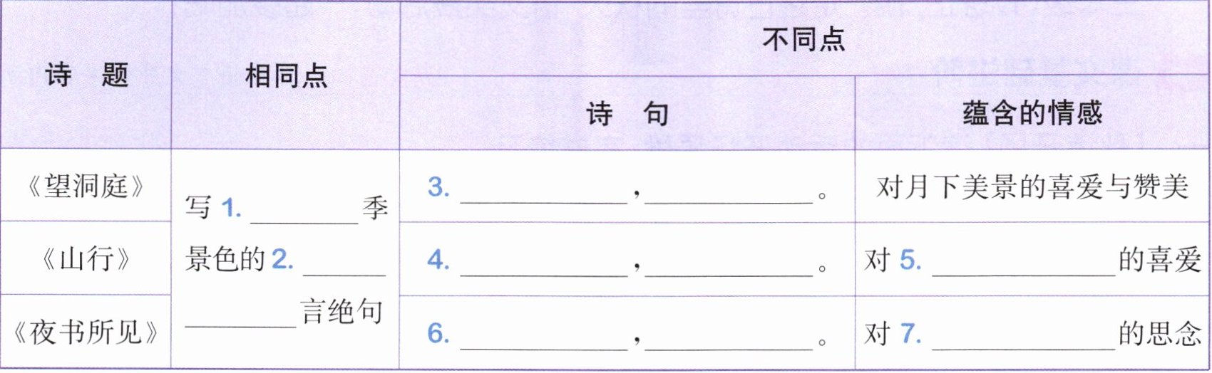 三、【课上赏诗】比较阅读课文中的三首古诗,完成下表。