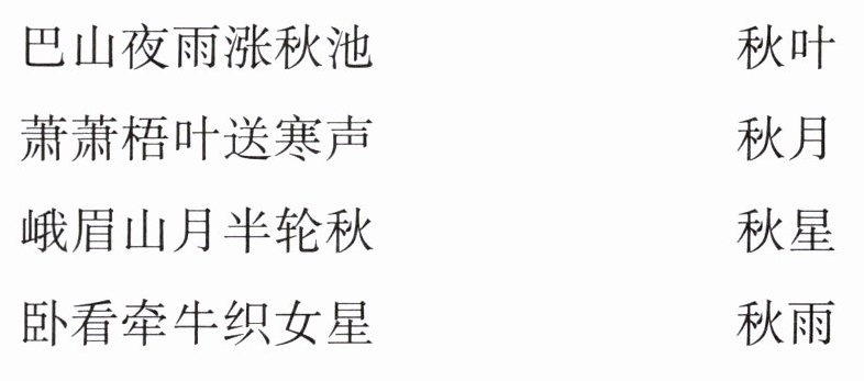 六、【秋诗比拼】实践活动结束了,根据自己积累的关于秋天的知识,完成练习。