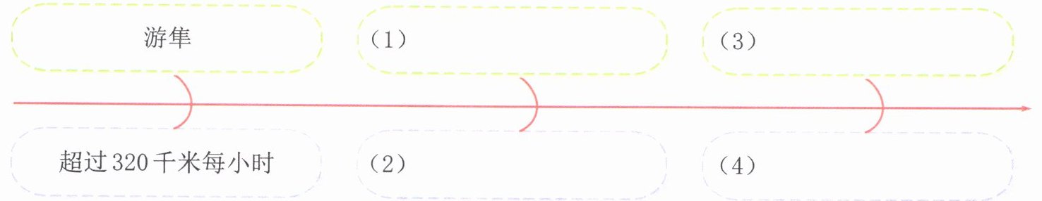游隼向下俯冲时的速度比任何一种动物奔跑时的速度都要快。pēn qì( )式飞机、huǒ jiàn( )的速度,一个比一个快。不过速度