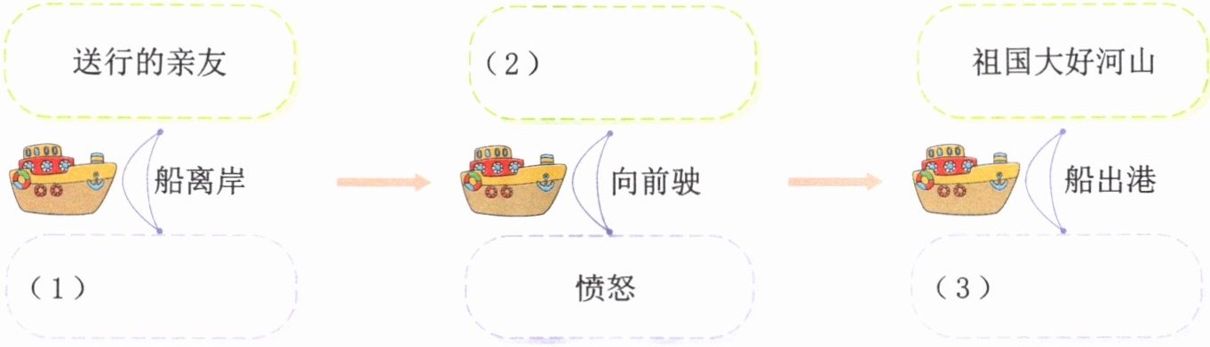 1. 思维导图 随着船的远航,作者看到了什么?他的心情发生了什么变化?请完成思维导图。(3 分)