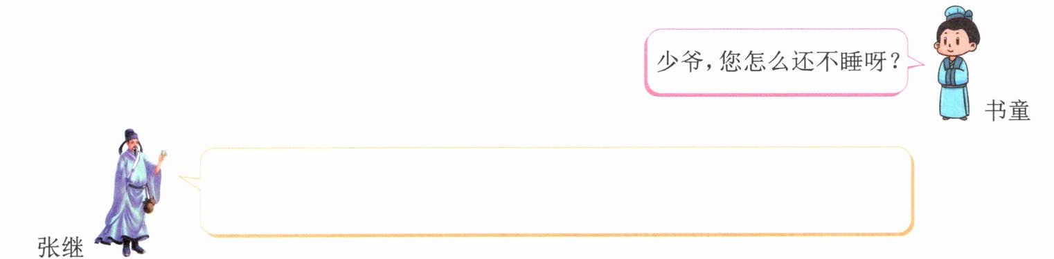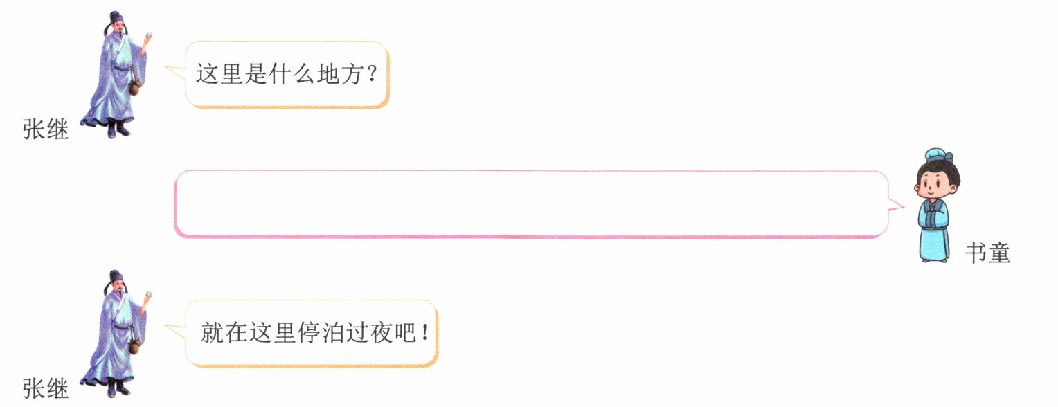 3. 张继考场失意后,带着书童和万千的思绪乘船回乡。诗人张继与书童站在船上,欣赏着江南的美景。想象当时的情景,完成对话。(4 分)