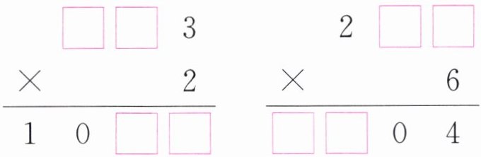 $\begin{array}{r}□□3\\×\ \ \ \ \ \ \ 2\\\hline1\ 0\ □□\end{array} $