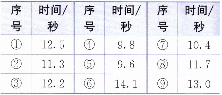 1. (五育并举)下面是某班9名男生60米跑成绩情况统计。