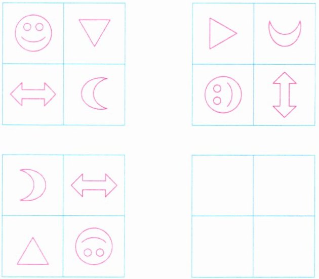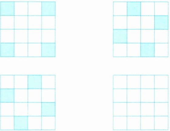 6. (推理意识)根据前三幅图的变化规律,在第四幅图中涂色。