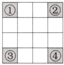 解析:如图,在第一幅题图的4个涂色部分中分别标上①②③④。根据题图可知,①向右平移1格,②向下平移1格,③向上平移1格,④向左平移1格,得到第二幅题图;①再向右平移1格,②再向下平移1格,③再向上平移1格,④再向左平移1格,得到第三幅题图。根据此规律,可画出第四幅图。