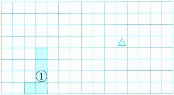 (2)将△先向左平移4格,再向下平移3格后到达下图所在的位置,请画出△平移前所在的位置。