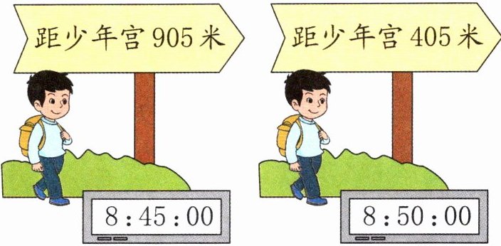(1)905-405=500(米) 500÷(50-45)=100(米) (2)405>400 400÷4=100(米) 405÷4>100 小宁不能到达少年宫