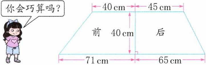 4. 一辆汽车侧面前后两块车窗玻璃的形状是梯形(如图)。这两块车窗玻璃相比,哪块的面积更大?