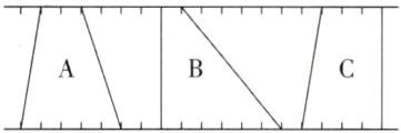 2. $^{\star}$在下面的两条平行线之间画两个形状不同的梯形B、C,使它们的面积都与梯形A的面积相等。