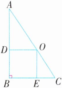 解析:如图,连接OB,则三角形BOC的面积+三角形BOA的面积=三角形ABC的面积。因为四边形DOEB是正方形,所以DO=OE,即三角形BOC与三角形BOA的高相等。因此三角形BOA与三角形BOC的面积之和=AB×DO÷2+BC×OE÷2=(AB+BC)×DO÷2。又因为三角形ABC的面积=AB×BC÷2,所以(AB+BC)×DO÷2=AB×BC÷2。由此,可求出DO的长,即正方形DOEB的边长,从而求出其面积。