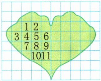 (2) 明明在估计右边树叶的面积时做了一些标记。若每个小方格表示 1 平方厘米, 则这片树叶的面积 (