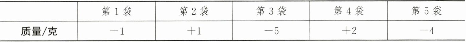 一种食品 的标准净含量为每袋100克(比标准净含量重或轻3克以内为合格)。检验员对这种食品进行检验,并将结果记录在下表中。(比标准净含量重1克记作+1克)
