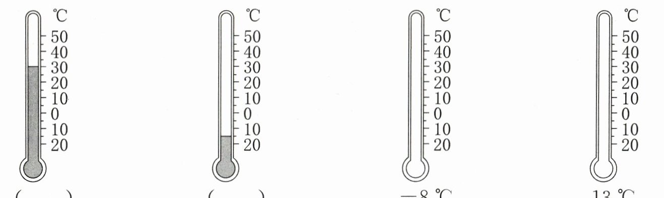 1. 如图,先写出前两个温度计显示的温度,再在后两个温度计上表示出相应的温度。(8分)
