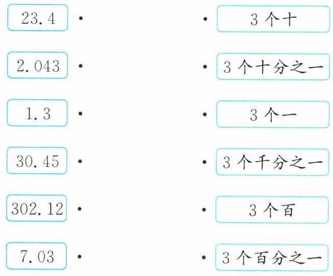 2. 下面各数中的“3”分别表示多少? 连一连。