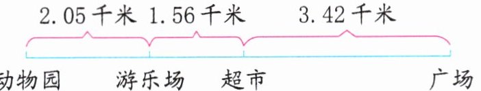 (3)1.56+1.56=3.12(千米) 解析:如图,这次丽丽去动物园比从超市直接去多走了两个超市到游乐场的距离。