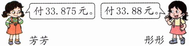 12.5×2.71≈33.88(元) 彤彤说得对 解析:在实际生活中,付钱时我们一般精确到分,即以"元"为单位,一般得数保留两位小数。
