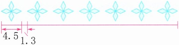 4.(扬州高邮)如图(单位:厘米),林林用彩纸制作了一条花边,一共排列了7朵花。每朵花的宽是4.5厘米,每相邻两朵花之间的距离是1.3厘米。这条花边一共长多少厘米?