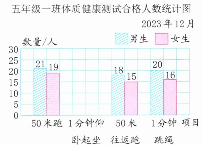 (2) 男、女生合格人数相差最多的项目是( ),相差最少的项目是( )。