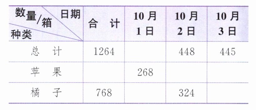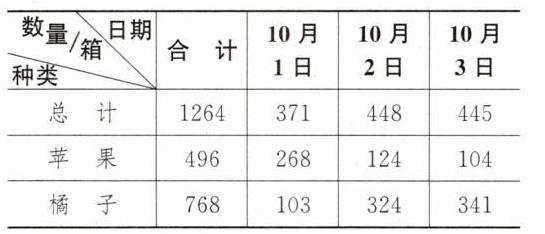 1. (生活应用)下面是阳光超市 2023 年 10 月前三天两种水果销量统计表。