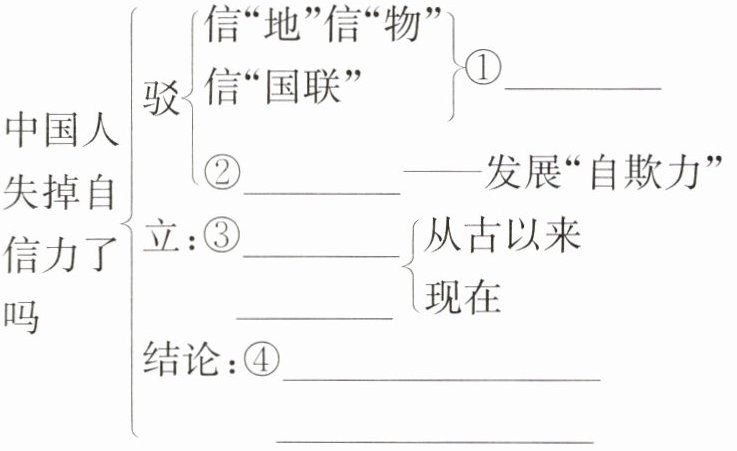 ①失掉自信力 ②信神佛 ③我们有并不失掉自信力的中国人在 ④自信力的有无,状元宰相的文章是不足为据的,要自己去看地底