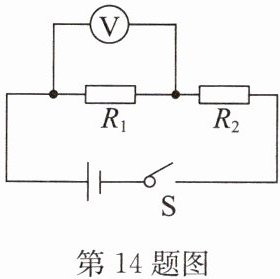 14. 如图所示,电源电压为 12V 且保持不变, $ R_{1} = 5Ω $,闭合开关,电压表的示数为 4V. 求:
