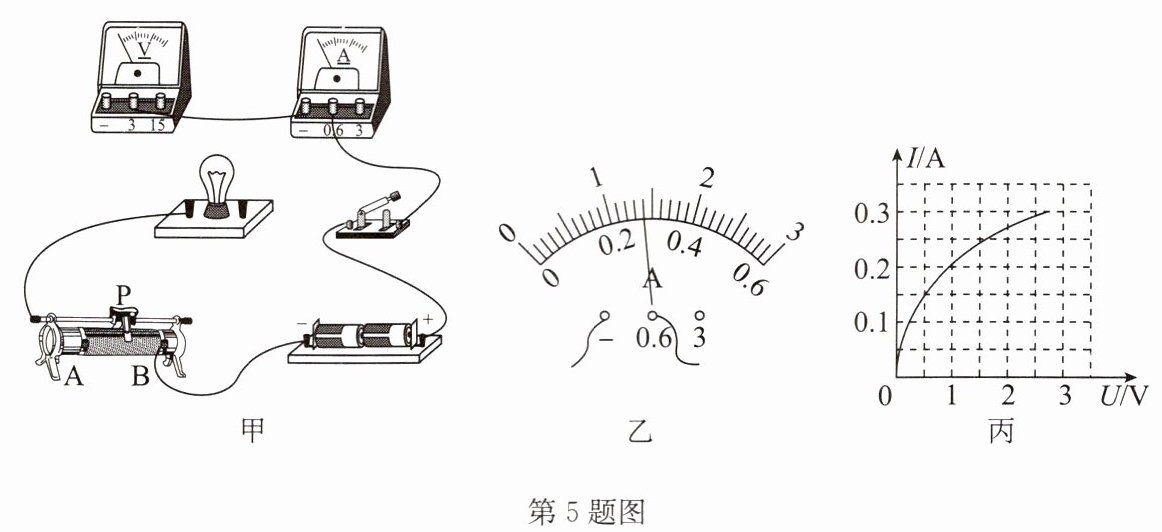 5. 在“测量小灯泡的电阻”实验中,选用的器材有:两节新干电池、正常发光电压为 2.5V 的待测小灯泡、滑动变阻器、电流表、电压表、开关和若干导线.