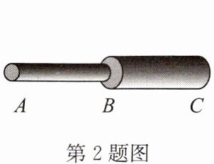 2. 如图所示,AB 和 BC 是由同种材料制成的长度相同、横截面积不同的两段导体,将它们串联后连入电路中,这两段导体两端的电压及通过它们的电流的大小关系正确的是 (