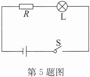 5. 如图所示,电源电压为 6V 且保持不变,小灯泡上标有“4.8V 0.3A”字样,为了使小灯泡能正常发光(假设灯丝的电阻不变),需要在电路中串联多大的电阻?
