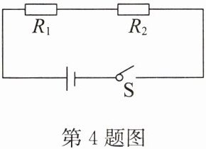 4. 如图所示,电源电压$U= 8V$,电阻$R_{1}= 4Ω,R_{2}= 6Ω$,将开关闭合.求: