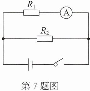 7. 如图所示电路中,$R_{1}= 20Ω$,$R_{2}= 30Ω$,闭合开关后,电流表的示数为 0.3A.则: