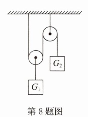 8. 如图所示,不计摩擦、滑轮重及绳重,重为$G_{1}$、$G_{2}$的两个物体现在处于静止状态,则$G_{1}:G_{2}=$
