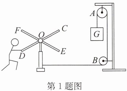 1. 如图所示的机械模型,推动硬棒CD或EF,使它们在水平面内绕轴O转动,即可将绳逐渐绕到轴O上,提升重物G。下列说法不正确的是 (